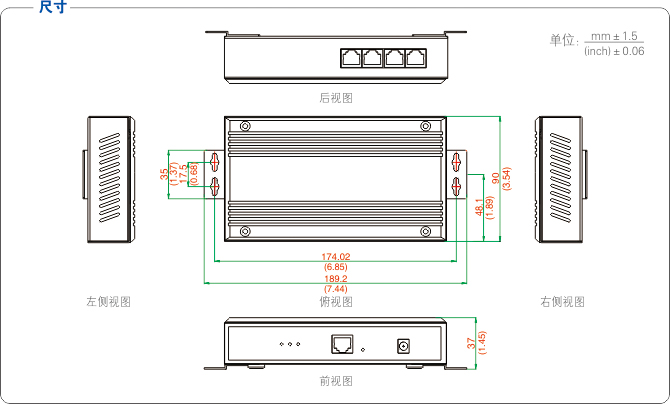 ●每个网口和串口都有独立的指示灯,方便地指示工作状态.